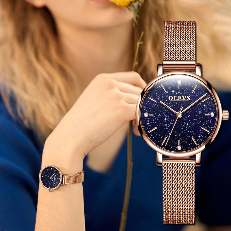 Jam tangan wanita emas nyata.